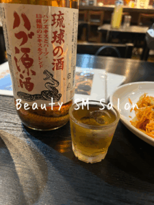 事後は近くの沖縄料理でハブ酒を飲んだり普段食べない沖縄料理を従者と一緒に楽しんだ。